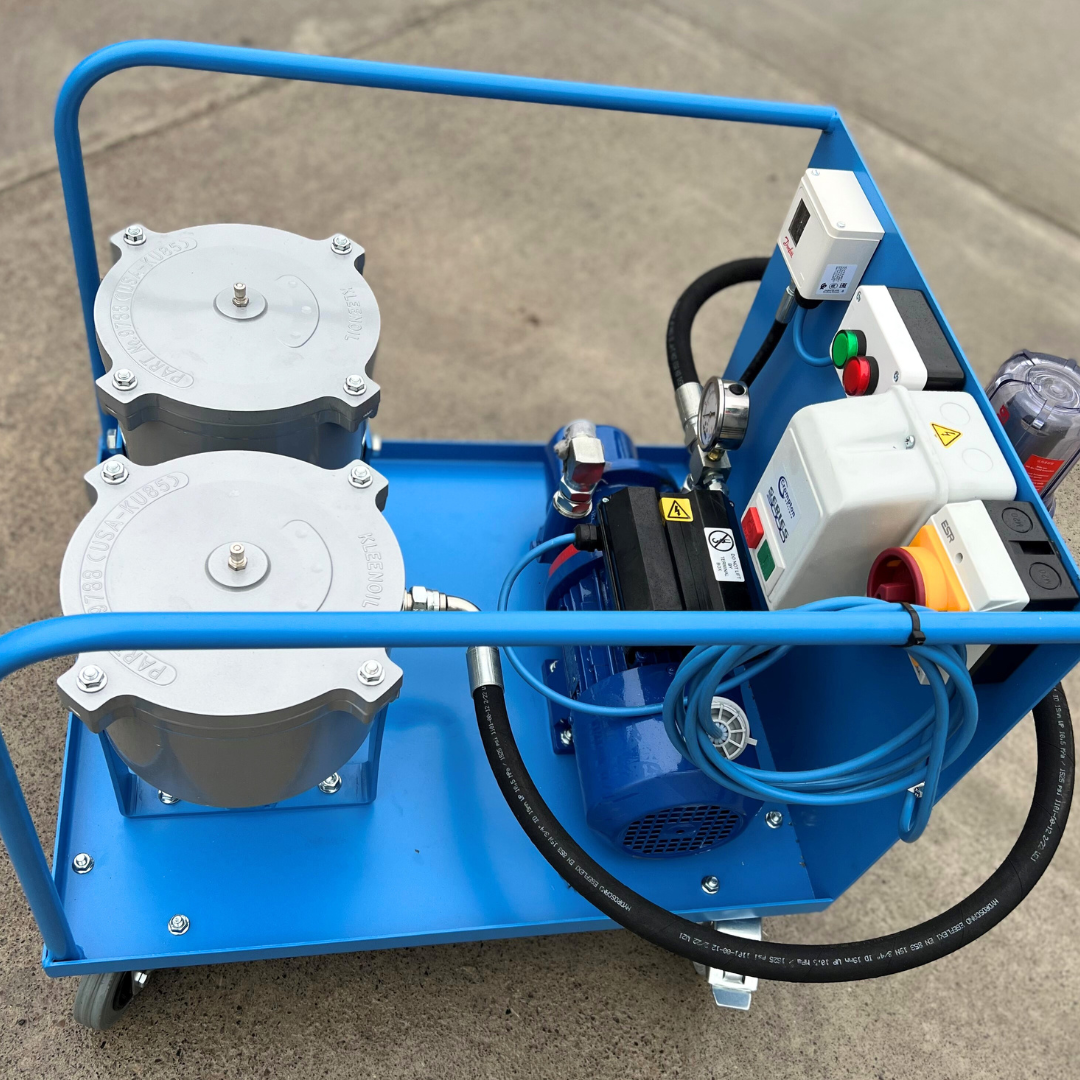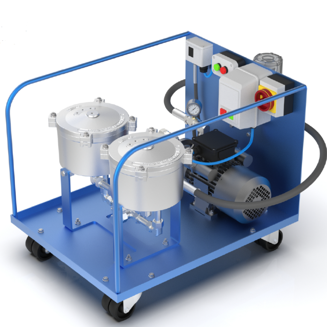 Niezależne urządzenie zewnętrzne do filtracji olejów przemysłowych lub transferu cieczy. Mobilny system filtrujący, który umożliwia filtrację oleju w różnych miejscach w zależności od potrzeb. Zastosowane wkłady filtracyjne zatrzymują zabrudzenia od 1 mikrona, absorbują wodę oraz wychwytują cząstki metaliczne za pomocą filtra magnetycznego (w opcji z filtrem MM5).